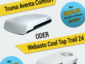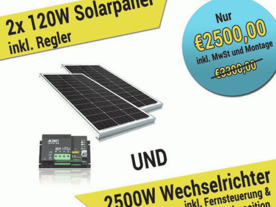 Vom 1. Juli bis zum 31. August 2024 haben Sie die Chance, Ihr Wohnmobil bei uns günstiger aufzurüsten: ob Solarpanel für autarkes Reisen oder Klimanlagen für angenehme Kühle bei heißen Temperaturen.